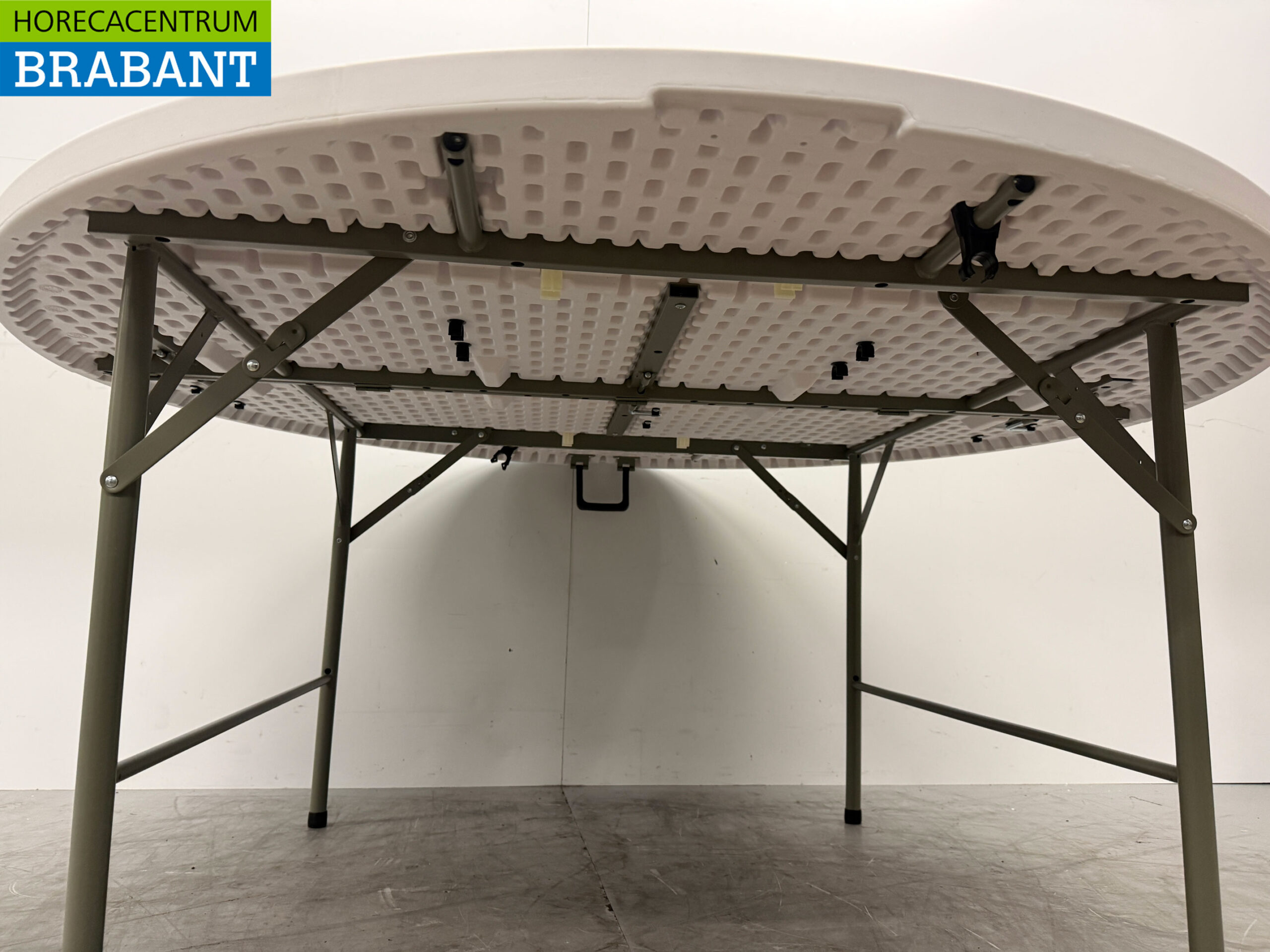 Diesen praktischen Klapptisch können Sie überallhin mitnehmen. Er ist praktisch und robust und kann überall stehen. Der Tisch ist aus hochqualitativem Polyethylen gefertigt und hat Beine aus Stahl. Er ist ideal, um ihn zur Hand zu haben, wenn Sie vorübergehend zusätzliche Tische benötigen. Sobald dies nicht mehr der Fall ist, lässt er sich leicht verstauen.