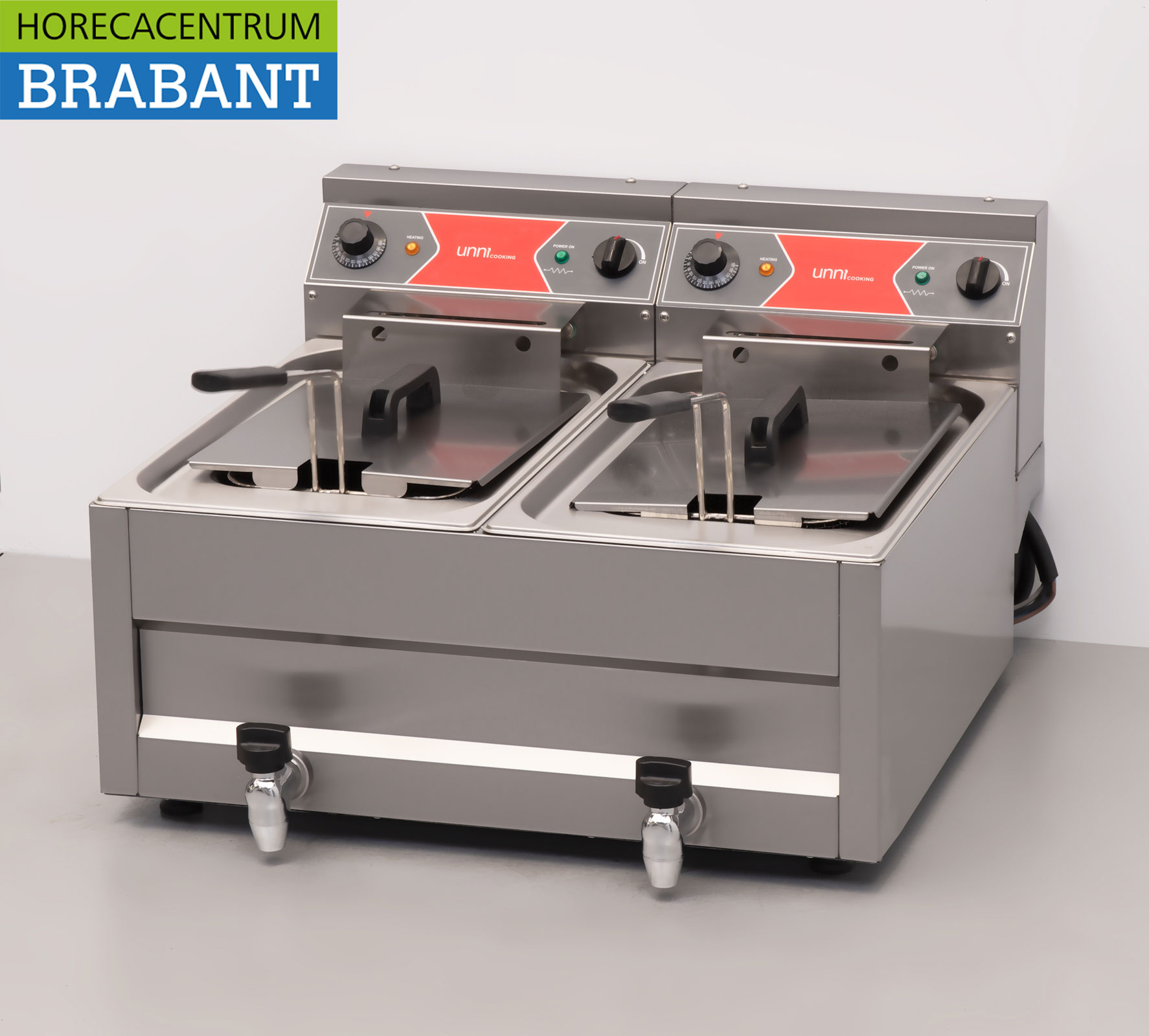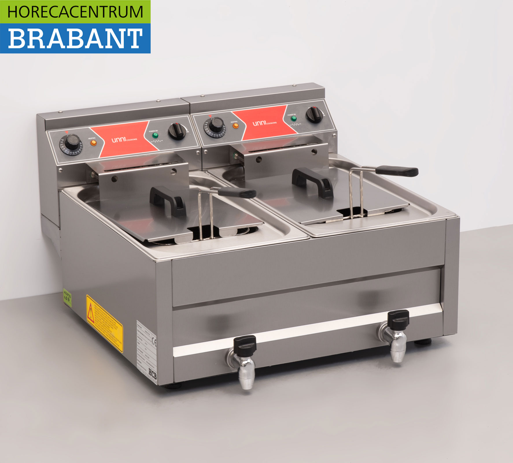 Diese hochwertige elektrische Doppelfritteuse von HCB ist komplett aus Edelstahl (RVS ) gefertigt und für den intensiven professionellen Gebrauch konzipiert. Die Fritteuse verfügt über zwei separate Wannen mit je 12 Litern Inhalt, die ein effizientes gleichzeitiges Frittieren verschiedener Produkte ermöglichen.