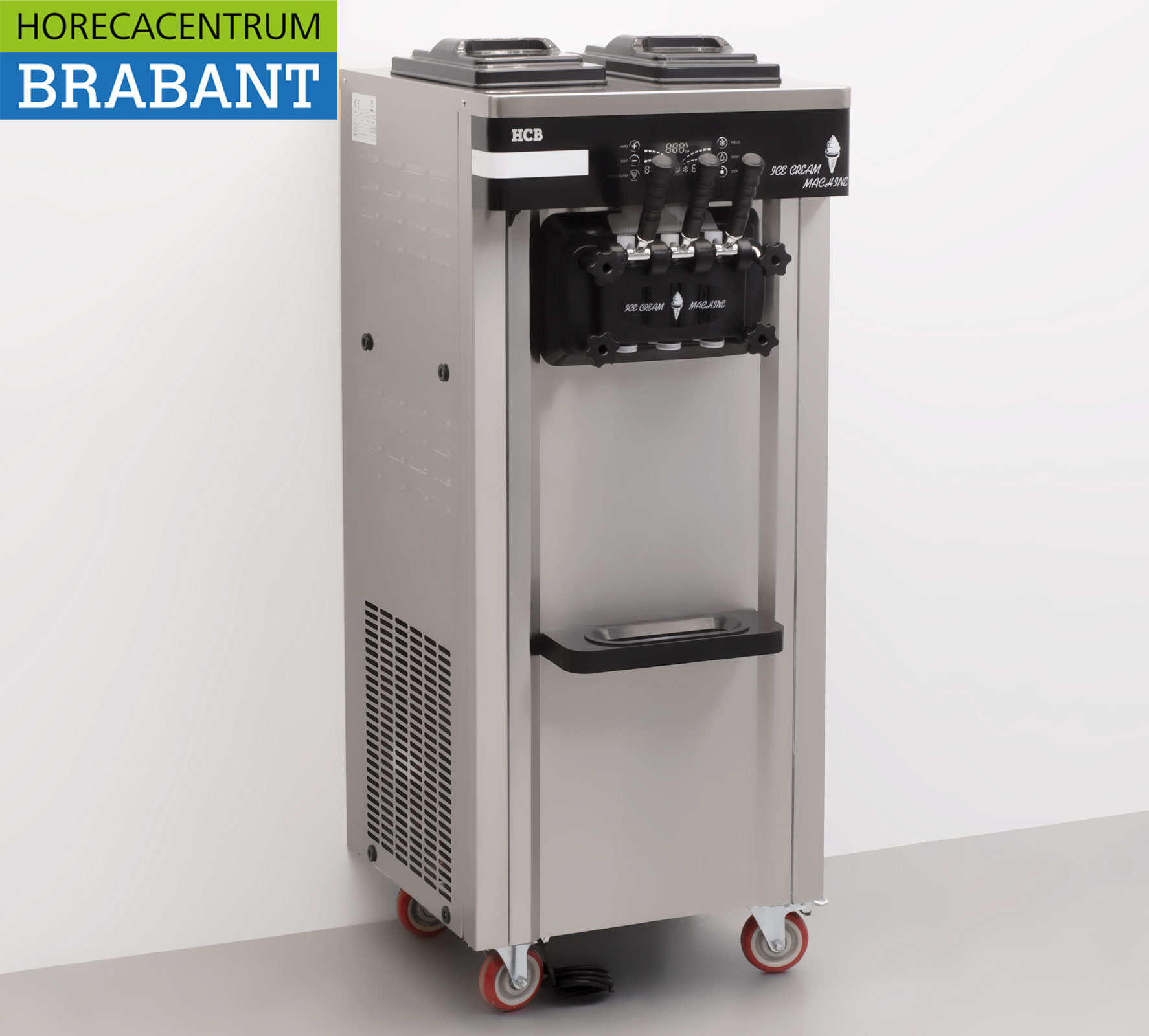 Professionelle Eismaschine aus Edelstahl von HCB, ideal für Gastronomiebetriebe, in denen Kontinuität und Kapazität wichtig sind. Die Maschine ist mobil und für zwei verschiedene Geschmacksrichtungen geeignet, wobei Sie beide Sorten separat oder als Mix zapfen können. Dank des Doppelkompressors liefert die Maschine auch bei intensiver Nutzung eine stabile Leistung. Dank der Nachtfunktion kann das Produkt sicher in der Maschine verbleiben.
