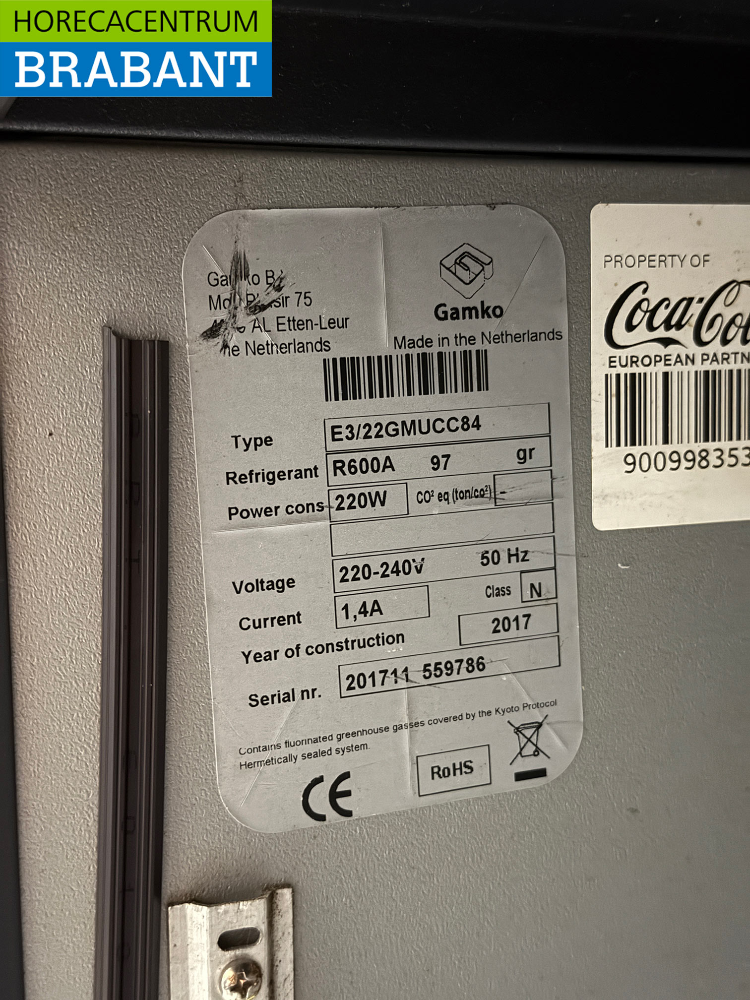 Gamko Bar Cooler aus Edelstahl 2 Glas-Scharniertüren 143,5 cm 230V Horeca