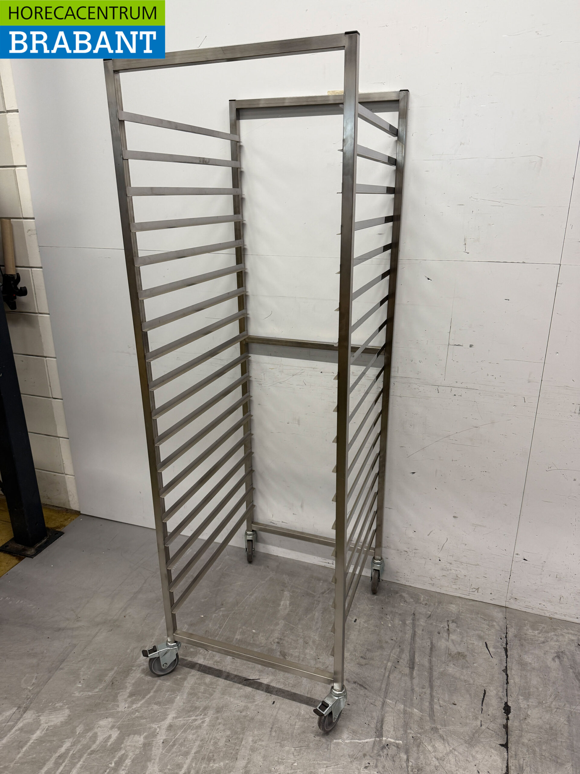 Gastro M Edelstahl-Wagen im Gastronorm-Format – besonders robuste Ausführung. Hergestellt aus quadratischem Edelstahlrohr 2,5×2,5cm. Ausgestattet mit vier Lenkrollen, von denen 2 gebremst sind.